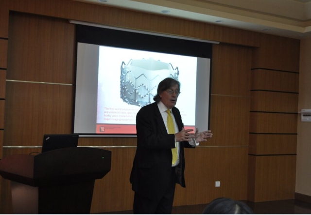 期间,Williams教授作了题为“The biomaterial industry: perspectives on challenges to achieve clinical success with medical devices”的精彩报告。他首先介绍了目前工业应用中的生物材料种类及当前生物材料应用面临的挑战。随后,Williams教授分享了在南非推进的治疗项目——性能稳定、价格便宜,用于风湿热引起的儿童心脏病治疗的新型聚亚安酯心脏瓣膜,并重点阐述了医疗器械从实验室设计到临床应用所要面对的挑战。会后,Williams教授认真回答了师生们关于论文撰写、生物材料应用等方面的问题。