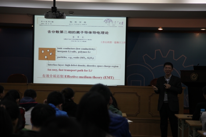 报告会上,南策文首先展示了玻璃(无序系统)中的3个典型问题,对其中的导电与绝缘现象进行了阐述。他着重介绍了全固态锂电池,并从能量密度和安全问题等方面与传统锂电池进行比较,展示了全固态锂电池的优势。同时,他结合自身求学、科研经历,鼓励员工坚持自己的想法,积极进取,并以“道路自信”“不忘初心”言简意赅地总结了自己30余年从基础到应用的科研生涯。报告会结束后,南策文与现场师生进行了热烈的交流和讨论。