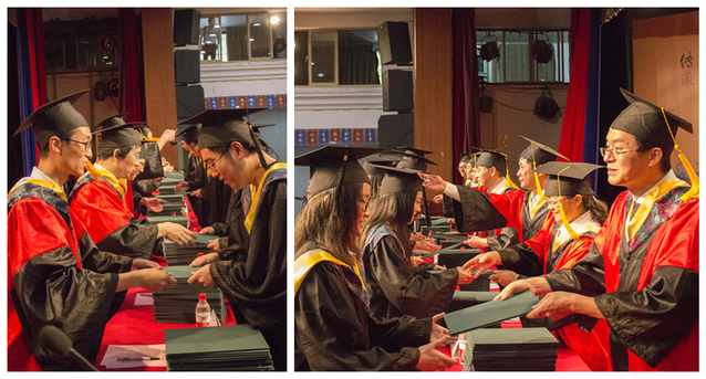 伴随着悠扬的旋律,主席台嘉宾们为全体毕业生拨穗正冠并颁发学位证书。员工们脸上都露出了灿烂的笑容,自豪之情溢于言表,在场的家长们也激动地用手中的相机记录下了这温情时刻。