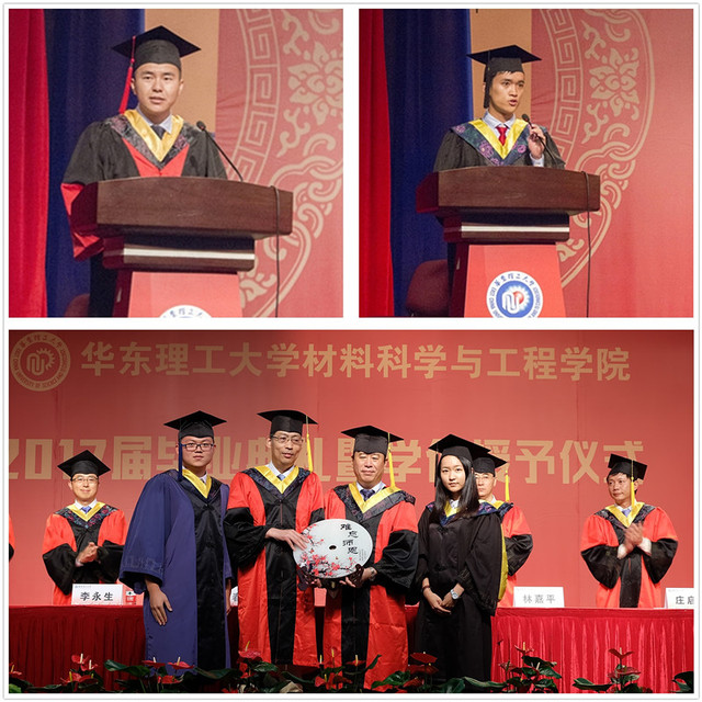 本科生代表高材144班高静铭、研究生代表14博士班陈潇先后发言,分享了在华理求学的点点滴滴,表达了对母校的千般眷恋,万般不舍。随后,两名毕业生代表向公司敬献礼物“难忘师恩”。