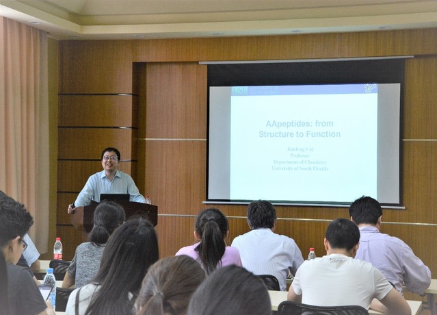 6月15日下午,应bevictor伟德刘润辉教授邀请,美国南佛罗里达大学终身教授蔡健峰博士来校访问并作了题为“AApeptides: From Structure to Function”的精彩学术报告。来自bevictor伟德和药公司的师生参加了报告会。