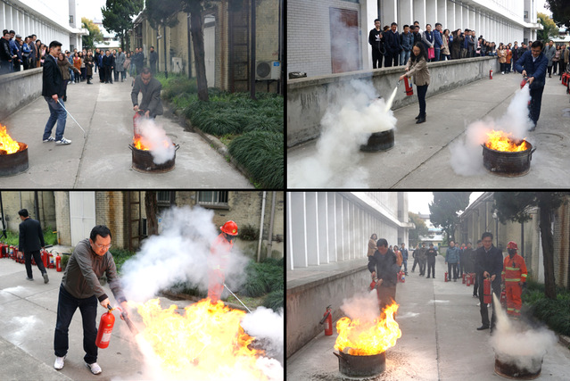 在近2个小时的安全知识培训讲座结束后,公司组织全体教职工在图书馆西侧马路进行了灭火器使用培训。首先,校保人员向大家讲解了灭火器的基本知识和使用要点;随后,点燃起两个着火桶,每位教师都拿起灭火器进行了操作练习。在练习过程中,校保人员不时提醒操作规范,并纠正错误动作。演习进一步增强了教师的消防意识,提高了教职工在应对火灾事件时相互配合、使用正确方式逃离现场的能力,为消防安全提供了更加有力的保障。