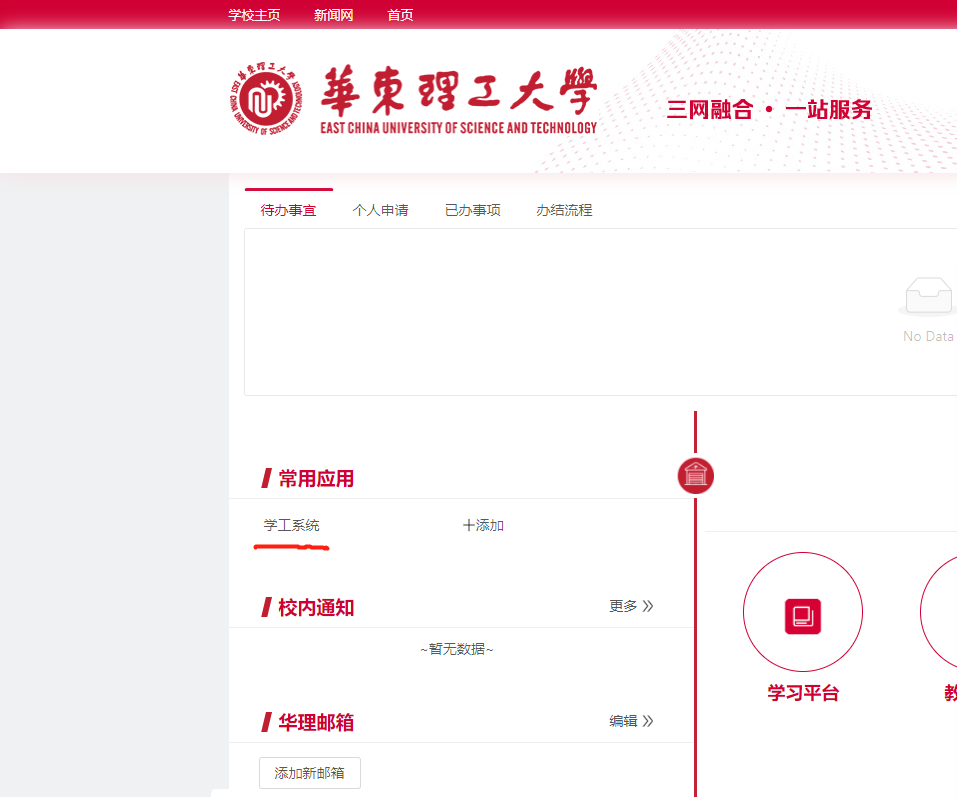 1.通过PC端进入信息门户网站:https://i.ecust.edu.cn/,
