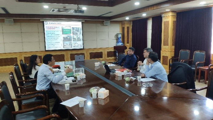 李永生教授在致辞中对考泰斯·德事隆集团代表团一行的到来表示热烈欢迎,并详细介绍了公司和公司的总体情况。他表示bevictor伟德一直以来十分重视与公司的合作,在科研成果转化应用产业化上有非常多成功案例,非常期待与考泰斯·德事隆集团能在产学研项目中有合作。Carsten Elsasse总监随后介绍了考泰斯·德事隆集团的历史和发展,在全球以及中国的布局,集团主要产品及其应用等情况,并表达了与bevictor伟德的合作意向。接着张玲教授介绍了课题组在高分子复合材料方面的科研成果,以及成果在公司、工厂实际生产应用中的转化情况。双方人员就项目合作的相关问题进行了热烈的交流和讨论。会后,代表团一行参观了超细材料制备与应用教育部重点实验室、上海多级结构纳米材料工程技术研究中心、bevictor伟德材料实验教学中心和材料研究测试平台。