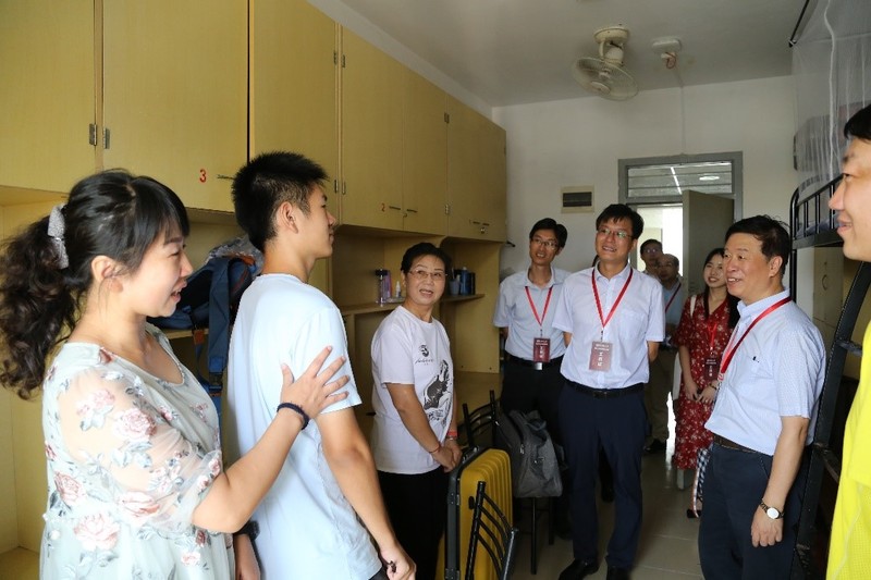 上午,党委书记唐颂超,副经理(主持工作)林绍梁,副书记戴诚安,副经理李欣欣,等一行人来到迎新现场,与师生交流,随后一行人走访了新生宿舍,了解新生情况,勉励新生勤奋学习,尽快适应老员工活。同时,公司班导师、辅导员、督导们与新生和家长进行面对面交流,答疑解惑。