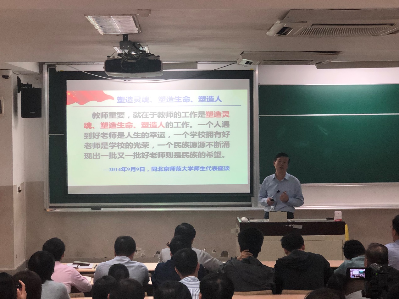 唐颂超首先作《学习习近平总书记关于师德师风的论述》专题党课。他首先与教师们一起学习了习近平总书记关于“师德师风”的重要论述,回顾了习近平总书记对于教师的期望和寄语,他指出教师是立教之本、兴教之源,要时刻铭记教书育人的使命,做“四有”好老师。唐颂超强调评价教师队伍素质的第一标准应该是师德师风。好老师要有“捧着一颗心来,不带半根草去”的奉献精神,自觉坚守精神家园、坚守人格底线,带头弘扬社会主义道德和中华传统美德,以自己的模范行为影响和带动员工。最后,他勉励全院教师不能只做传授书本知识的教书匠,而要成为塑造员工品格、品行、品味的“大先生”。