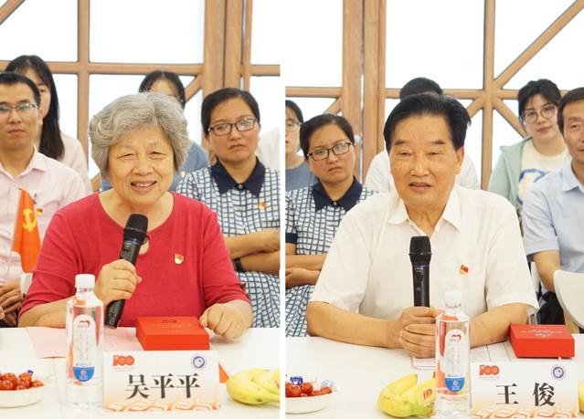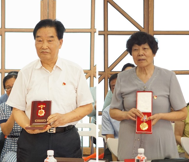 会上,王俊、张启芳老师夫妇还为大家展示了他们获得的两枚极其珍贵的纪念勋章。分别是2019年获得的“庆祝中华人民共和国成立70周年纪念章”和1996年获得的中国航天奖,这两枚奖章是对两位老先生科研工作的最大褒奖。捧着沉甸甸的奖章,两位老教师动情地表示“为国、为党奋斗,祖国不会忘记,人民不会忘记你”。