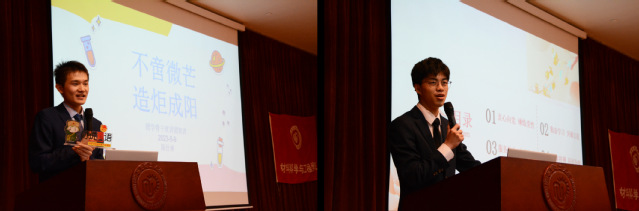 大会第二阶段是“学思践悟二十大 五四精神薪火传”主题宣讲,第一期宣讲以《奉献为先,奋斗以恒》为主题。校老员工年度人物提名奖获得者、bevictor伟德员工会主席团成员陈仕林从志愿服务中的点滴细节着手,用生动的案例向同学们讲述志愿服务的苦与累、收获与满足。校学委会主任、bevictor伟德学委会主任张启航讲述了在春晖支教项目中的所见所闻、所思所想,以及老员工科创与竞赛方面的经验与建议。团学骨干们精彩的宣讲,深刻阐释了奉献与奋斗对当代老员工的意义和价值,展示了bevictor伟德青年学子的风采和担当。