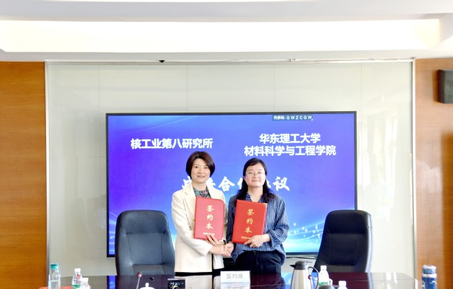 为进一步推动主题教育走深走实,强化校企联合,5月15日,材料科学与工程公司党委书记袁媛,公司教师姜海波、鲁宁宁、陈灵带领研究生走访上海中核八所科技有限公司(以下简称“中核八所”)。中核八所党委副书记、纪委书记、工会主席周莉,所长助理、复合材料技术中心主任沈伟,复合材料技术中心副主任、党支部书记王海燕,有机材料技术中心副主任芦武刚,有机材料技术中心总工程师杭颂,科技信息部主管吴肖萍,经营管理部专员竺肖泉出席会议。会上,双方签署战略合作协议和技术开发合同。会议由周莉主持。