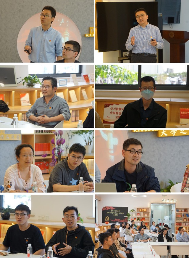 随后围绕如何强化专业责任,传承科技自立自强使命担当,与会人员交流发言。王立权分享了在杜磊教授、林嘉平教授的指导下,课题组明确方向,关于树脂研发、高分子材料基因组研发平台创建的相关故事,他强调要注重科研方向的一脉相承,在做出一定特色的时候,仍然要时刻保持危机意识。田晓慧讲到,我们对青年教师寄予厚望,他们肩上的担子很重,希望能给青年教师更多的发展支持。孙金煜谈到,结合对习近平总书记关于科技自立自强的重要讲话的原文学习,再到“AI PLUS高分子平台”,很有感触,这个方向对员工也有一定的吸引力,在ChatGPT广受关注的同时,我们在专业领域也有了创新融合,要注重青年员工的培养,做好后继者的传承,在课程教学、实践实验方面探索交叉学科知识的渗透。徐彬彬谈到,通过这次主题党日,对高分子材料基因组平台有了更深入地认识,后续希望加强交流,促进交叉融合,作为青年教师,奋力争先的同时,要能坐得下“冷板凳”,做好长期奋斗的准备。材料硕士第六党支部书记姜翔宇谈到,前期“AI PLUS高分子平台”在员工中引发了热议,不仅青年教师要传好“接力棒”,作为即将毕业的研究生和“一线”的工作人员,也要助力师弟师妹,做好传帮带的工作。