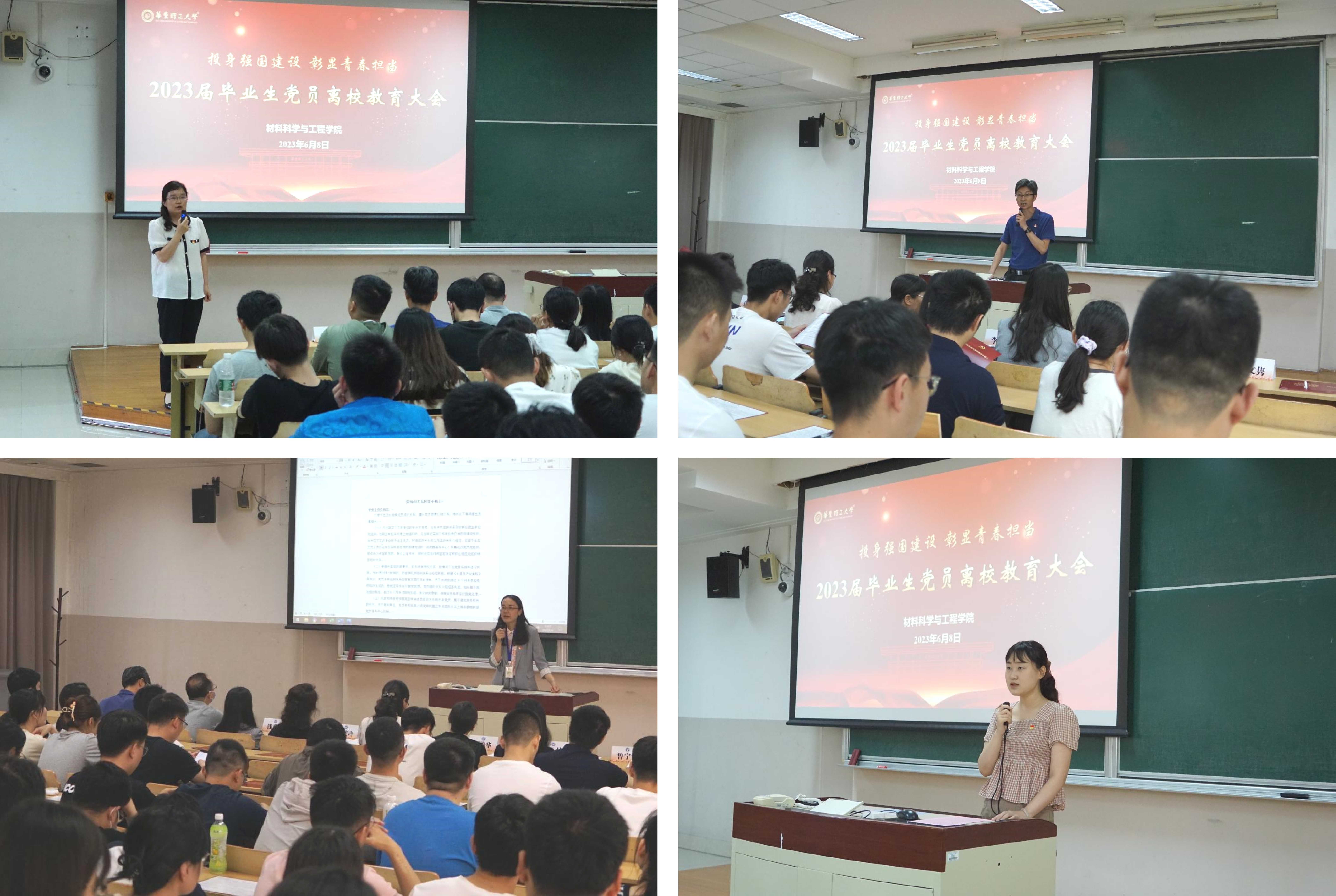 为深入开展学习贯彻习近平新时代中国特色社会主义思想主题教育,引导和鼓励毕业生党员坚定理想信念,以良好的精神风貌踏入新的征程,6月8日中午,bevictor伟德在徐汇校区八教107召开2023届毕业生党员离校教育大会。材料公司党委书记袁媛、党委副书记兼纪委书记苏建玲、党委副书记戴诚安、专职组织员、本研辅导员、党建兼职辅导员及全体毕业生党员参会。会议由戴诚安主持。