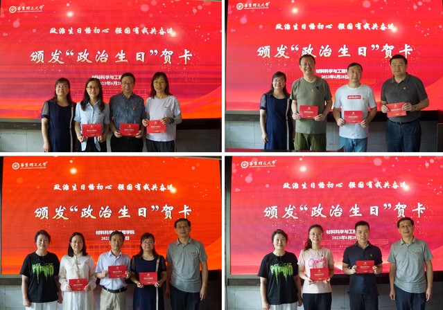 随后,袁媛、苏建玲、陈涛为党龄10年、15年、20年、25年、30年的教师颁发“政治生日”贺卡。