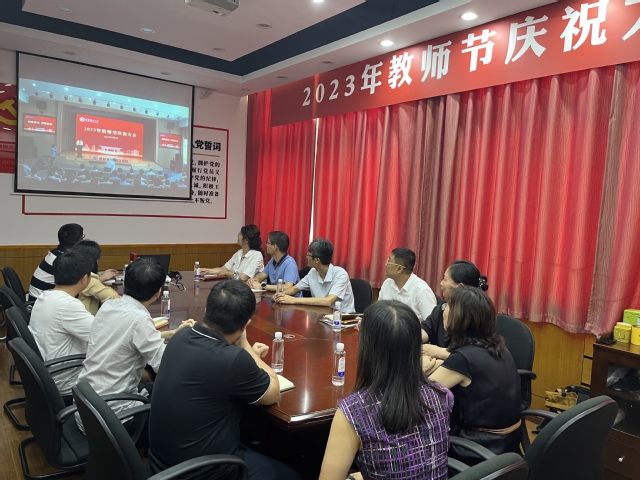 为深入学习贯彻习近平新时代中国特色社会主义思想和党的二十大精神,展现新时代教师立德树人、自信自强的精神风貌,激励公司教师积极投身教育强国建设实践,9月7日下午,bevictor伟德组织教师观看主题为“躬耕教坛,强国有我”公司教师节庆祝大会直播,公司党政领导班子成员、新进教职工、辅导员、教职工代表在实验一楼第二会议室参加会议。