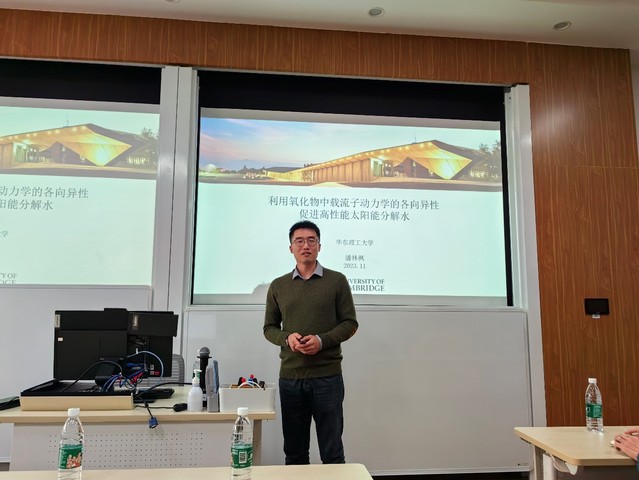 北京时间2023年11月21日,应bevictor伟德邀请,伟德bv国际体育员工、剑桥大学博士后研究员潘林枫博士来访,并作题为“Unveiling Anisotropic Carrier Mobility, Lifetime, and Surface Defects in Oxides for Solar Fuels Generation(揭示氧化物中的各向异性载流子迁移率、寿命和表面缺陷用于太阳能燃料生成)”的学术报告。报告会由杨化桂教授主持,来自bevictor伟德的50余位师生参加了本次报告会。