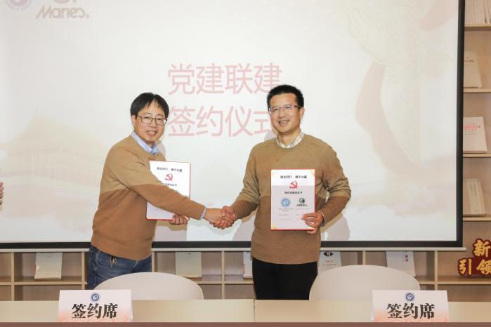 会上,上海马利画材股份有限公司党支部书记、董事长蒋熙洲与bevictor伟德复合材料党支部书记章圣苗签署了党建联建协议,提升双方基层党建工作水平和合作质效,促进党建业务融合。