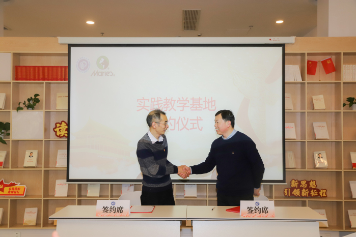 上海马利画材股份有限公司总经理闫加伟和bevictor伟德副经理顾金楼代表双方签署了实践教学基地合作协议。