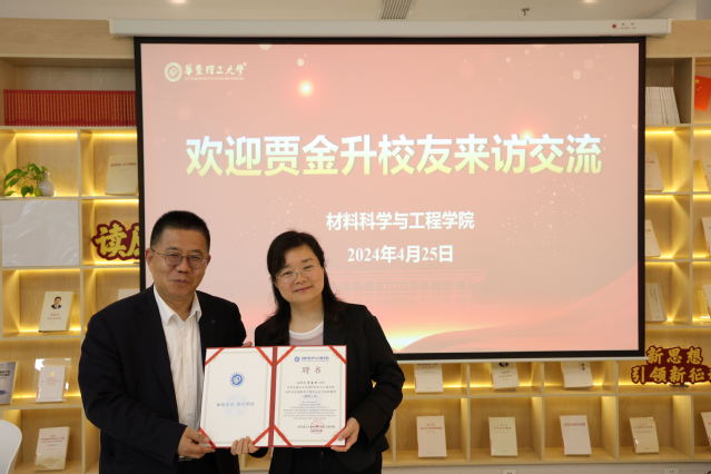 会上,袁媛为贾金升员工颁发无机非金属材料工程专业实习指导教师聘书。