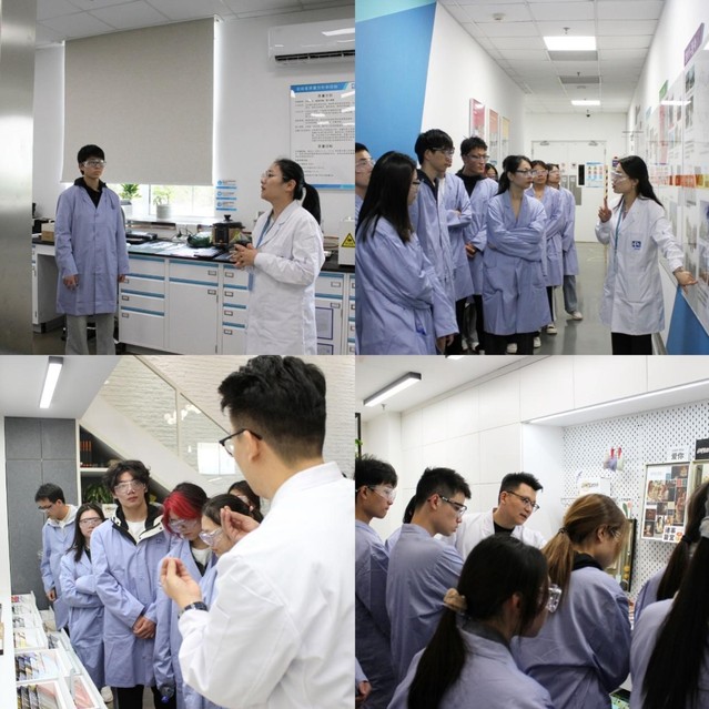 随后,师生一行来到中国应用创新研发中心(CAIC),在遵守PPG各项IP保护事项的前提下,两位主讲带领一行参观CAIC研发中心各个办公区、实验室。其中着重介绍了PPG颜色办公室、板材硬度测试实验室及PPG发展历史,直观展示了PPG公司发展体系完善、工作环境优越、规划清晰有序的特点,让同学们对以PPG为代表的化工类企业有了更深层次的了解。