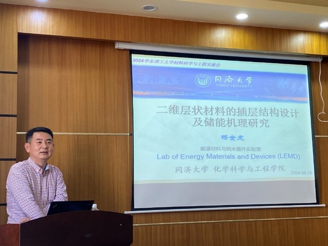 杨金虎教授作了题为“二维层状材料的插层结构设计及储能机理研究”的报告,介绍了团队在碳插层二硫化钼化合物的精准构筑方面的工作,以及二硫化钼化合物在锂离子电池等储能器件中的应用。