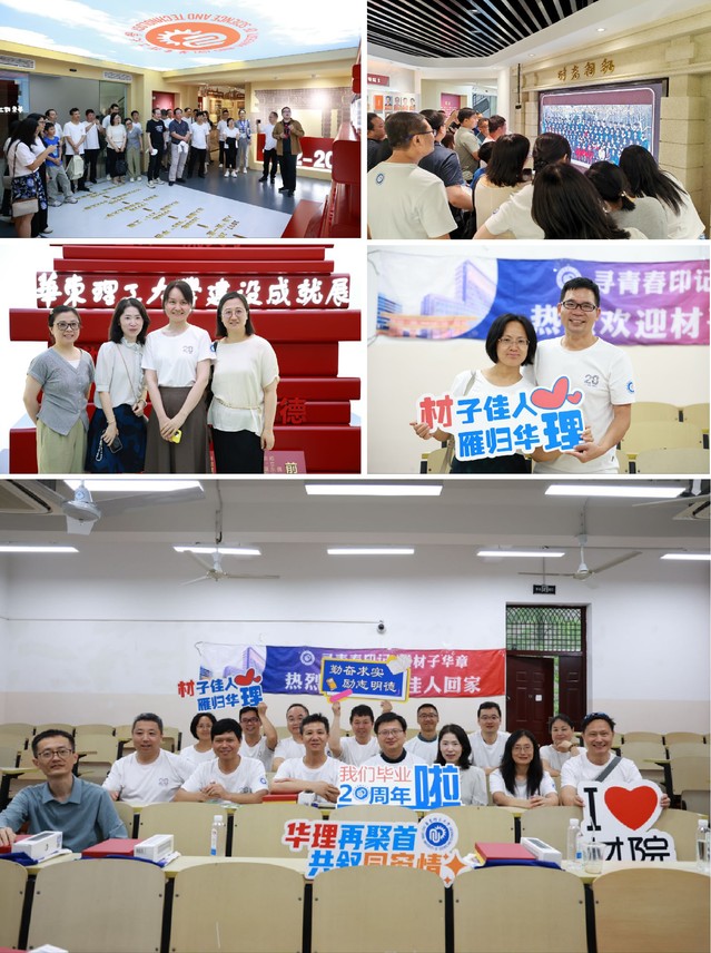 部分员工20年未见,其中有几位员工带着孩子从美国飘洋过海、跨越万里相聚华理,久别重逢,格外开心。伴随着“寻青春印记 谱材子华章”青春相册视频,新生入学班级团建、宿舍谈心、操场拔河、毕业答辩、穿着学位服在公司门前合影,一张张老照片把记忆拉回到曾经的青葱岁月,让大家欢声笑语不断又感慨万分。