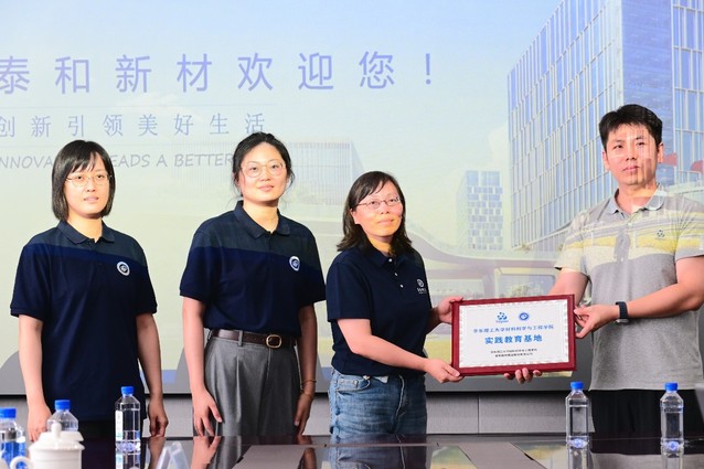 随后,在会议室薛经理介绍了集团的产业布局和未来规划,泰和新材始终坚持“创新引领美好生活”的口号,以衣、行、服务事业群进行分类,同时涵盖多个高新技术领域,实现多元化发展战略。公司还设立了创新中心中央研究院和创业中心梦工厂,助力技术创新与产品实施。与此同时,泰和新材还在存量业务提升,增量业务拓展方面双管齐下,保障公司持续发展。与会师生积极提问,与泰和新材共同深入探讨新材料未来量产等问题。同时泰和新材表示希望今后能与公司有更进一步的交流合作,实现资源共享与共同进步,贾维华代表公司向泰和新材授牌“实践教育基地”。