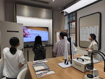 在展厅内,在讲解员的带领下师生学习了解了祖母绿矿床分布、祖母绿切磨技术等知识。展览展示了祖母绿从矿石到珠宝作品完整的蜕变过程——始于地球深处的罕见地质环境中,经过细致的抛光、钻孔和雕刻等工艺,逐步凸显祖母绿的自然之美,展现其在颜色、净度与光泽的卓越表现。师生走进宝石工坊,通过显微镜等光学仪器进一步观察宝石微观结构。