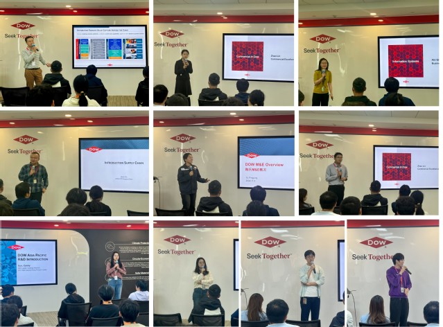 在对陶氏公司有了初步了解后,员工们回到会议室,进一步了解陶氏公司的运营机制。来自陶氏研发、商务、综合供应链、制造运营、信息技术五大部门的专家及华理员工们为员工们带来了各部门的职能介绍以及各自的职业经历分享,不仅让他们对公司的内部结构和运转机制有了基础认知,也激发了他们对自己未来职业道路的思考。