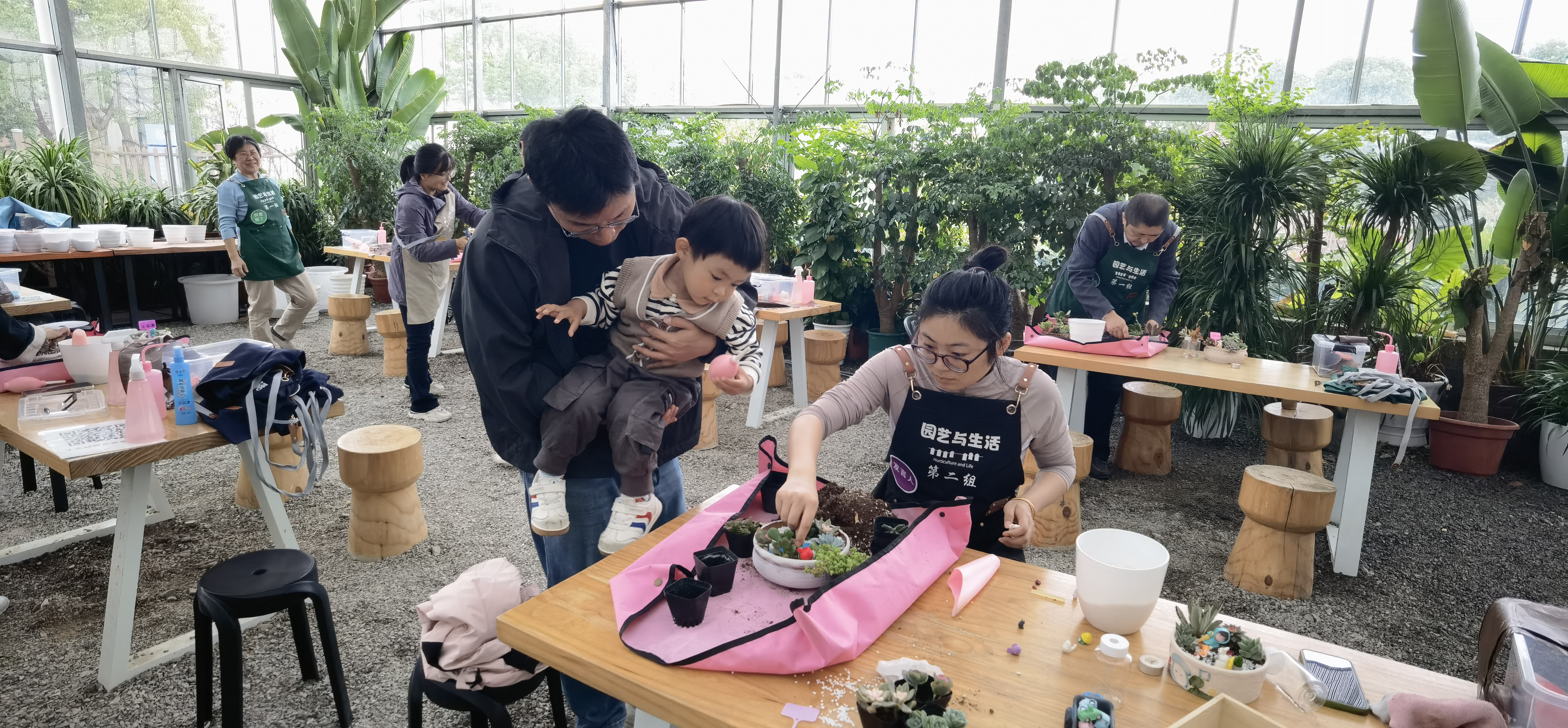 到达奉贤校区后,老师们兵分两路。一部分青年教师前往体育馆,和员工开展羽毛交流,在“你来我往”中锻炼身体,增进师生情谊。另一部分老师来到了劳动教育实践基地,在指导老师的带领下了解多肉类植物的种植、养护知识,并兴趣盎然地制作创意多肉拼盆,体验园艺乐趣,放松身心。