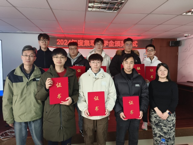 NICE-华昌联合创新中心主任、华昌公司副总工程师钱建华博士介绍了华昌公司始终坚持聚合物新材料产业化工作,走“专精特新”发展之路,解决重点工程关键新材料卡脖子技术并实现产业化的历程。蔡益民博士介绍了长三角国家创新中心积极以产业需求为课题,依托联合创新中心,为产业发展持续提供技术创新、技术供给、技术服务,设立了集萃奖学金,为社会培养了大批集萃研究生,希望为新材料科技成果转化作贡献。华昌公司副总工程师茆凌峰宣读了2024年度集萃奖学金获奖员工名单。本次奖学金面向NICE-华昌联合创新中心与伟德bv国际体育联合培养的研究生,共资助bevictor伟德54位研究生(11名博士生、43名硕士生)。长三角国家创新中心、华昌公司领导为获奖员工颁发荣誉证书。
