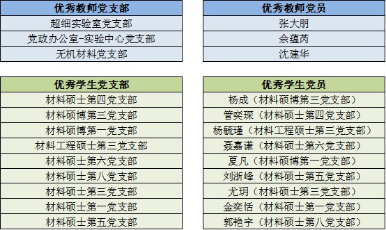 两场考评会由公司党委委员、教师代表、专职组织员、党建指导教师等担任评委。经无记名打分,超细实验室党支部等3个教师党支部、材料硕士第四党支部等9个员工党支部,张大朋等3位教师党员、杨成等9位员工党员获得年度优秀。