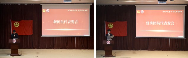新团员代表王楷阳在发言中感谢团组织认可,并承诺将以实际行动践行团员使命,为团组织增光添彩。优秀团员代表陈瑞分享参与员工工作和社会实践的经验,号召青年学子以五四精神为指引,将个人成长融入时代发展,在团组织中发挥模范带头作用。