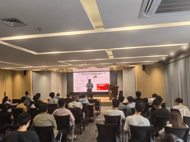 报告会上,岳远征院士结合自身的“玻璃之路”科研历程,分享了科研初心、学术体悟与重要经验,并重点介绍了团队在玻璃材料领域取得的系统性成果。报告内容系统展示了从超快速冷却、MYEGA模型到玻璃结构、热力学与动力学行为研究的完整理论体系,金属有机框架玻璃、超绝热泡沫玻璃以及全玻璃电池等前沿应用的关键突破,展现出从基础研究到产业转化的完整创新链条,为深入理解玻璃材料的微观构效关系及其在绿色能源领域的应用奠定了坚实基础。会上也分享了培养员工的使命和乐趣、调动员工积极性的案例,鼓励员工要站在高处,望着远方,加强语言学习,保持好奇与执着。