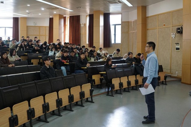 培训以“防护知识+实操演练”形式展开。理论环节,马宝意结合真实事故案例与实物演示,系统讲解呼吸、眼面部、手部、身体防护用品的功能差异、选配要点及正确使用方法,强调“无万能防护装备”原则;同时覆盖危险化学品分类、应急救援物资、喷淋及洗眼器规范使用等核心安全知识。化学品泄漏应急处置部分,马宝意介绍吸附棉、中和剂等应急物资的使用要点,明确“自身安全优先”的处置准则,并以硫酸泄漏为模拟场景开展示范性演练——指导师生正确穿戴化学防护服、全面具、防护靴、手套等防护装备,依次完成泄漏区域安全评估、吸附清理及废弃物处理的全流程操作。
