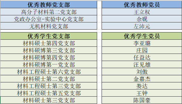 员工党支部书记述职 经无记名打分,高分子材料第二党支部等3个教师党支部、材料硕士第四党支部等9个员工党支部,王立权等3位教师党员、李亚璐等9位员工党员获得年度优秀。