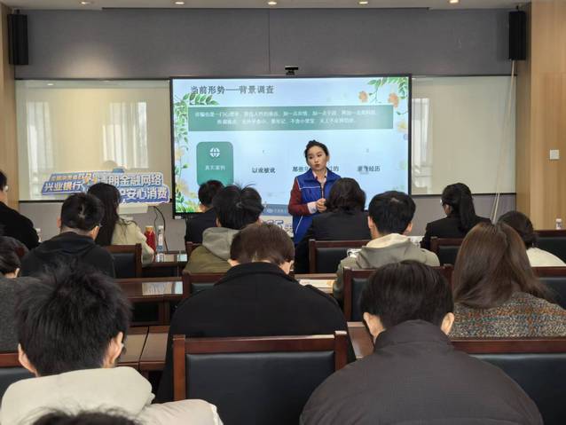 随后,兴业银行金融讲师黄颖开展专题授课,围绕金融诈骗当前形势、常见诈骗类型、基础金融知识科普等核心内容展开讲解。授课中,黄颖结合全国老员工金融诈骗相关调查数据,点明电信诈骗、校园贷、钓鱼网站为校园高发诈骗类型,并通过典型案例解析骗局作案手法,讲解不良校园网贷辨识方法,同步普及金融消费者八项权益、个人征信维护、存款保险等金融知识,帮助员工建立系统的金融安全认知。
