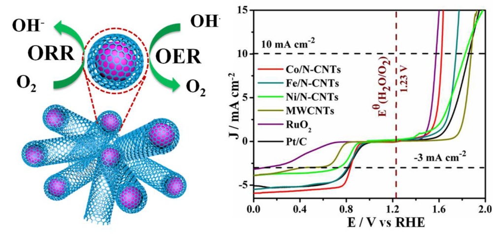 Yanyan Liu, Hongliang Jiang, Yihua Zhu,* Xiaoling Yang, Chunzhong Li*. Transition metals (Fe, Co, and Ni) encapsulated in nitrogen-doped carbon nanotubes as bi-functional catalysts for oxygen electrode reactions. J. Mater. Chem. A2016, 4, 1694-1701. (IF 8.867) (ESI highly cited paper) 2016-02