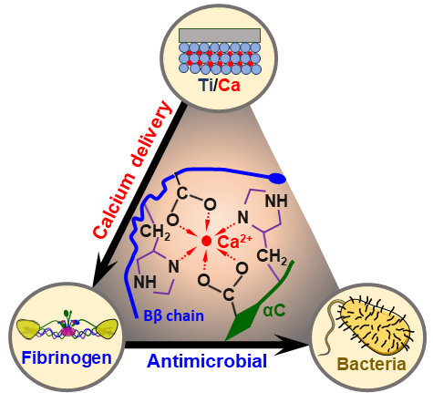 [003] Huiliang Cao, Thomas J. Dauben, Christian Helbing, Zhichao Jia, Yuechao Zhang, Moran Huang, Lenka Müller, Song Gu, Xiaoyuan Zhang, Hui Qin, Karin Martin, Jörg Bossert and Klaus D. Jandt. The antimicrobial effect of calcium-doped titanium is activated by fibrinogen adsorption. Materials Horizons, 2022, 9:1962-1968, https://doi.org/10.1039/D1MH02009A